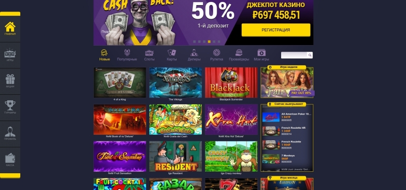 Ресурс позволяет полностью погрузиться в атмосферу драйва и азарта, ощутить себя членом настоящего казино. Здесь присутствуют все виды игр: