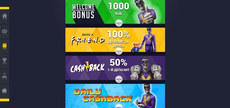 Каждый день сайт осуществляет кэшбэк, размер которого достигает 10% от потраченных средств.