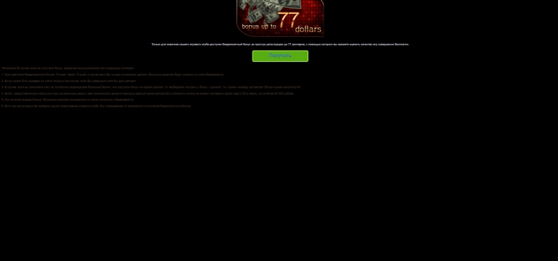 Онлайн казино Азино мобайл начисляет новому игроку после входа на сайт бонус за регистрацию. Размер капитала составляет 77 долларов США. Игрок получает стартовую сумму для первоначальных взносов на автоматы или другие развлечения игрового сайта. Бездепозитный бонус снимать запрещено. Нужно сначала отыграть полученные деньги.