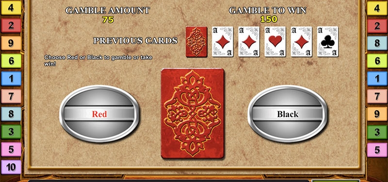 В видео слоте есть рискованный игровой раунд. Суть игры проста. После каждого удачного спина игроку предоставляется шанс умножить выигрыш в два раза. Для этого используется специальная клавиша с надписью Gamble. Если игроку удается выбрать нужную карту, то размер выигрыша моментально удваивается. В случае неудачи клиент теряет заработанную сумму за один удачный спин. Рисковать и повышать размер выигрыша можно до первой ошибки.