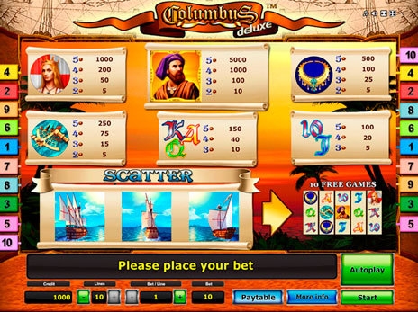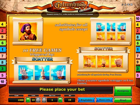 Во многих онлайн казино уже около 10 лет работает игровой автомат Колумб. Известная компания Novomatic не перестает радовать потенциальных клиентов новыми и усовершенствованными моделями игровых автоматов. Не стал исключением и обновленный видео слот Columbus Deluxe. Игровой аппарат радует геймеров приятным оформлением интерфейса и увлекающей игрой.