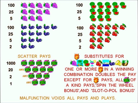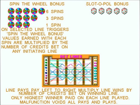 Авто игры в видео слоте Slot-o-pol не предусмотрено. Барабаны вращаются только после нажатия специальной клавиши. Без участия клиента никакие ставки не делаются.