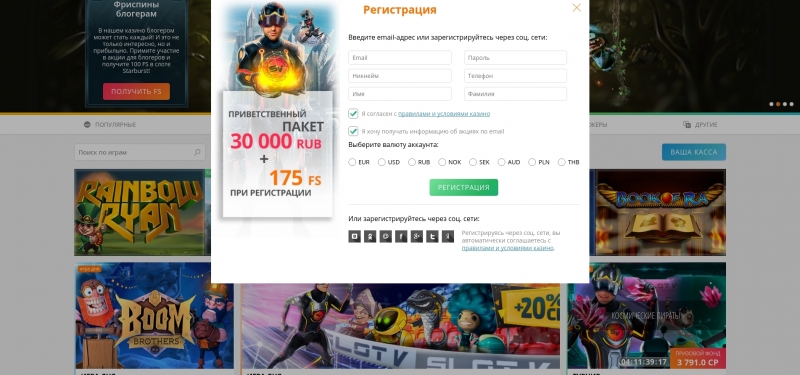 🎁 В казино много различных бонусов и подарков для зарегистрированных юзеров. Самый первый подарок участник клуба получает при регистрации – 175 бесплатных фриспинов. Однако, приветственный бонус на этом не прекращается!