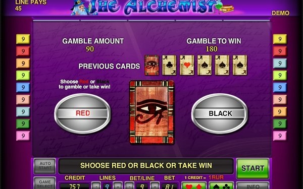 В видео слоте The Alchemist активируются до 20 игровых полос. От количества игровых линий зависит количество способов формирования выплат. Поэтому видео слот «Алхимик» считается гораздо прибыльнее таких автоматов Lucky Bugs, Columbus, Ultra Hot, Missis Gold, Cristal Luck, Double Magic и др.