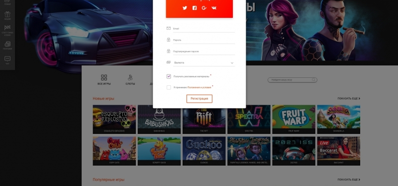 Если пользователь все таки решил получать бонусы, участвовать в турнирах или делать ставки на любимом гэмблинге, то он проходит быструю регистрацию. Для этого вводит личный имейл и придуманный пароль в соответствующие графы. Выбирает валюту для расчета. Для открытия счета в профиле указывает личную информацию. Процедура оформления проходит быстро и не требует навыков. После этого геймер совершает депозит, получает бонус и делает ставки.